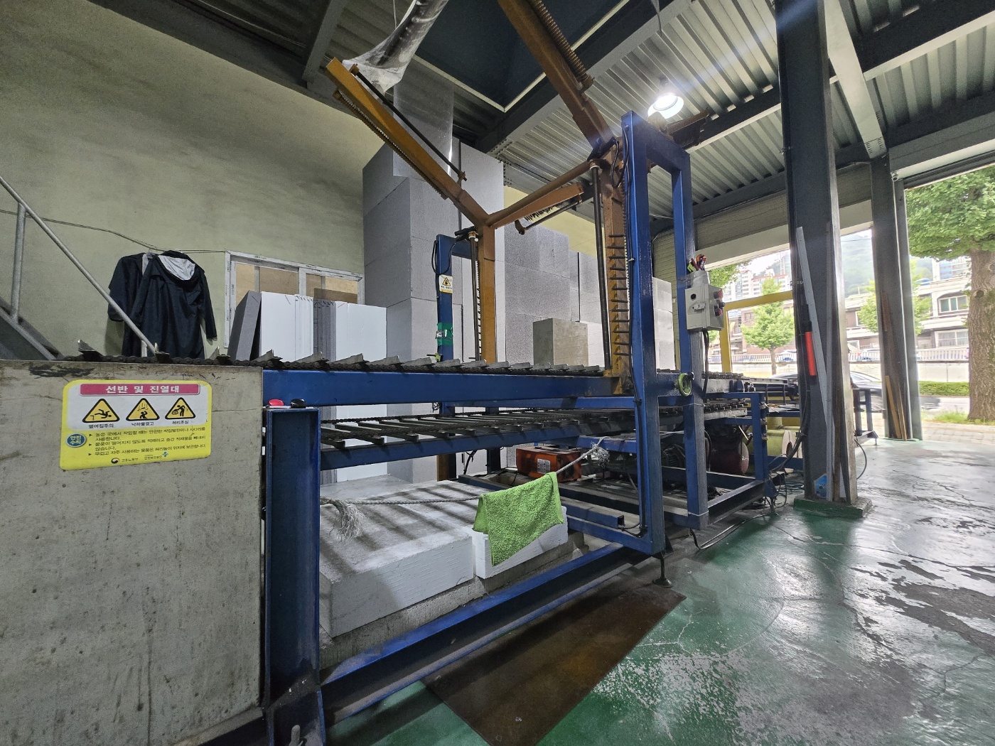 (2층으로 롤단열재들을 들어올려주는 크레인이에요)
