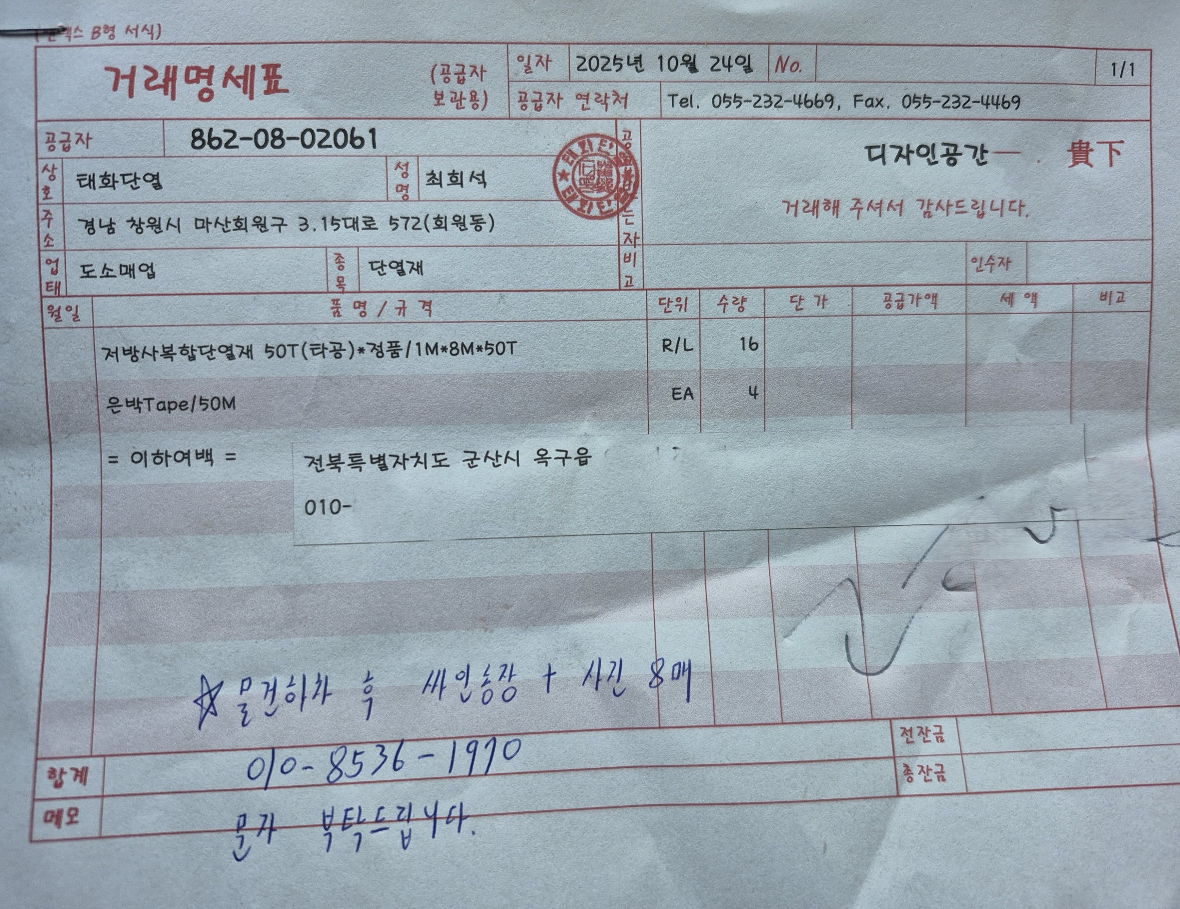 상호 태화단열 (건축용단열재 전문기업) Tel 055-232-4669 Mobile 010-8536-1970 Fax 055-232-4469 E-m...